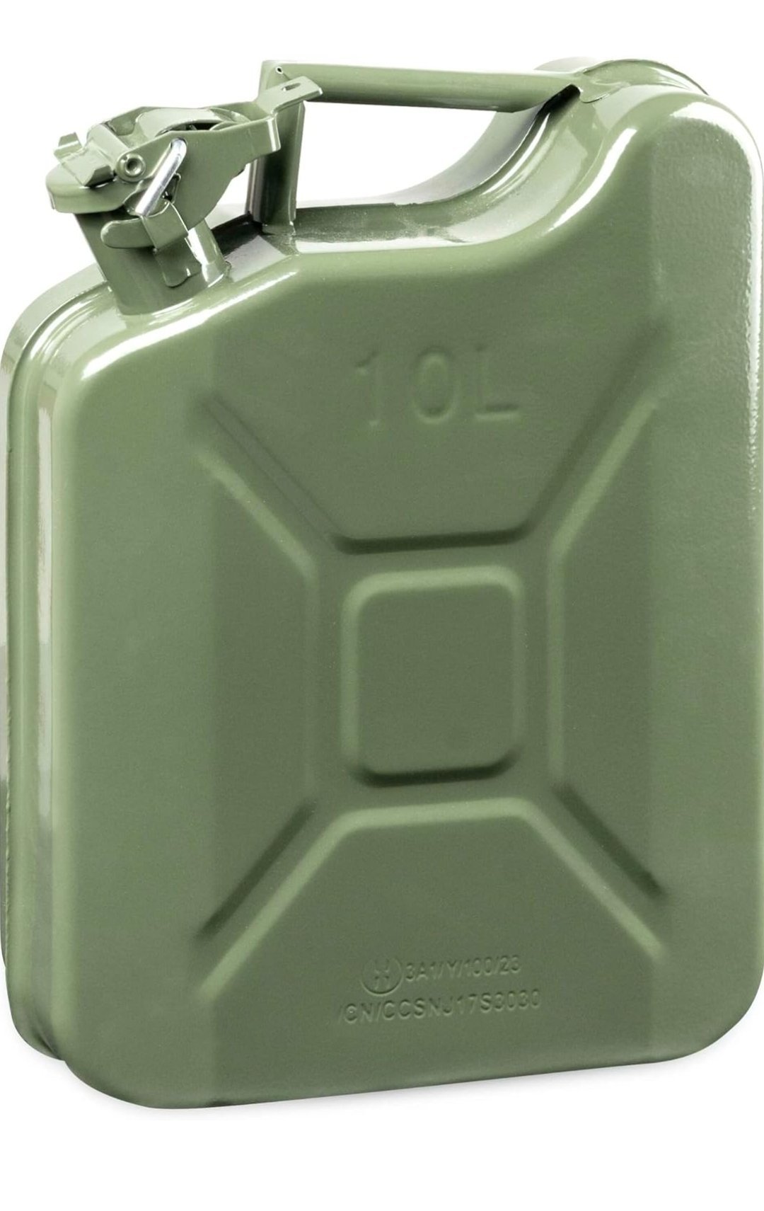Jerrican en métal robuste.Capacité : 20 litresCouvercle de verrouillage de sécurité pour éviter de renverser Triple poignée pour une résistance supplémentaire et une utilisation facilePlus sur le marché, avec haute force de joint pour éviter les fuitesDe l’intérieur pour sûr pour une utilisation même avec de l’eau