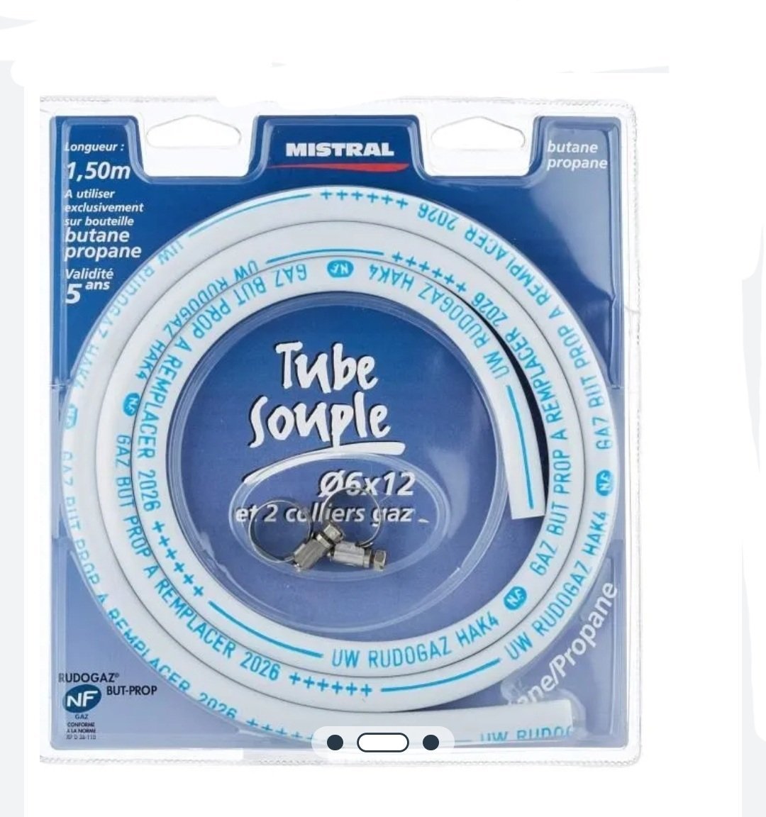 Tuyau souple gaz Butane/Propane Tuyau Raccordement à gaz Tuyau gaz butane propane – D: 6 mm – 1.5 m + 2 colliers 4,6 / 5