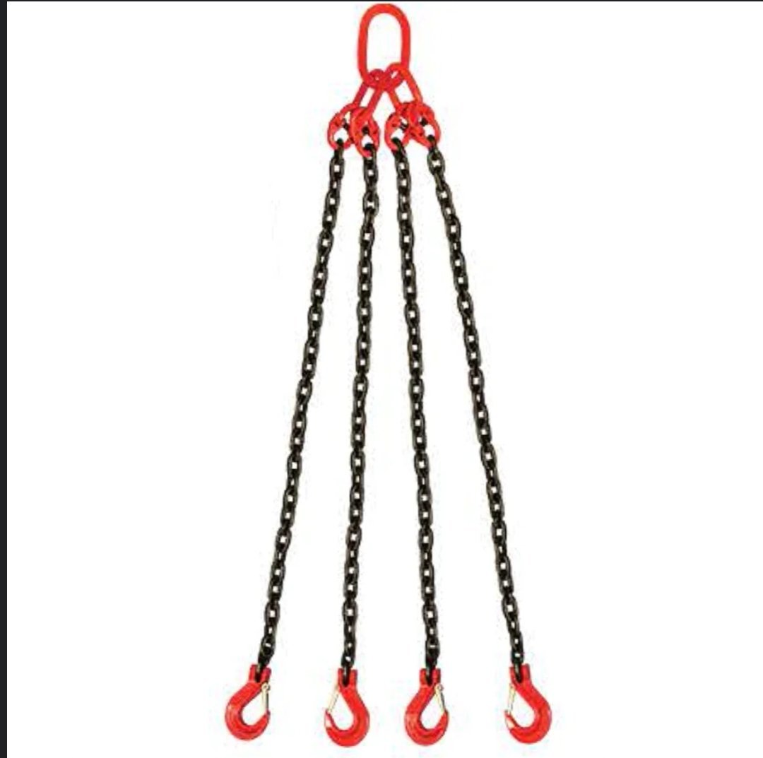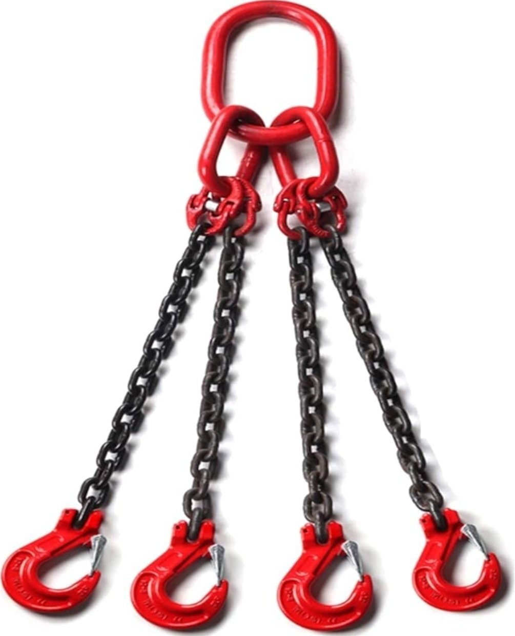 Structure : Elle se compose d’un grand anneau maître (maille de tête) en haut, de quatre chaînes individuelles (brins) en acier allié, et de quatre crochets de sécurité à linguet aux extrémités inférieures.