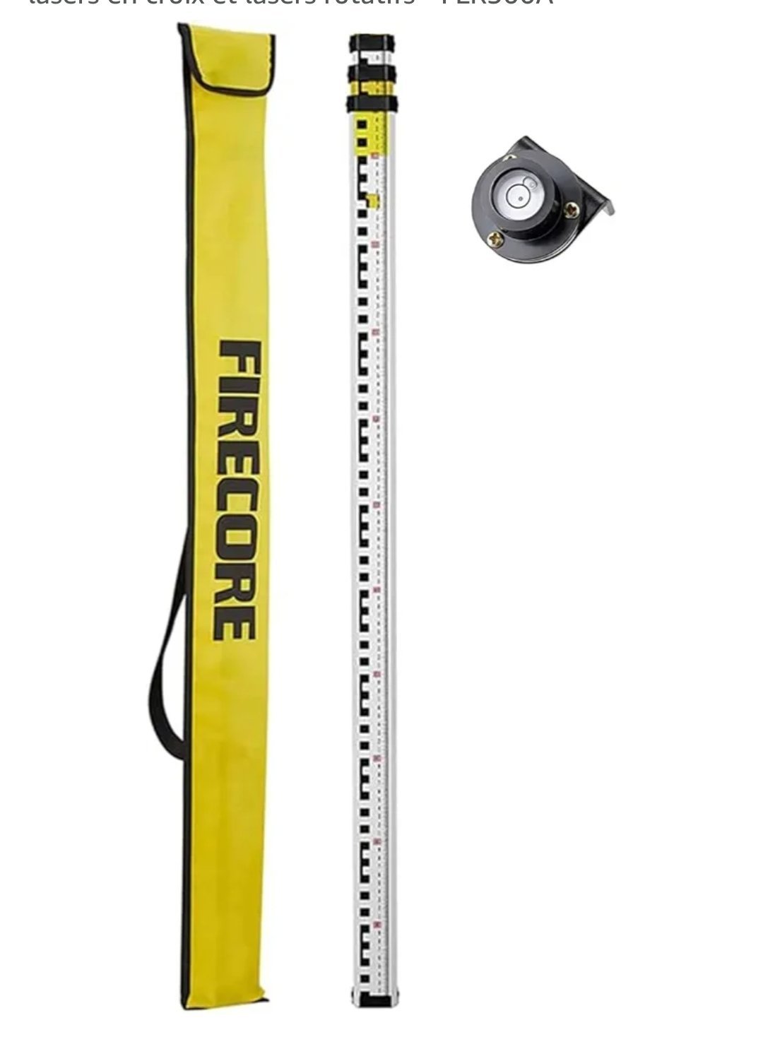Mire de nivellement télescopique Mire télescopique 3m, 3 Mire de nivellement télescopique avec bulle circulaire amovible et sac en nylon, pour lasers en croix et lasers rotatifs – FLR300A