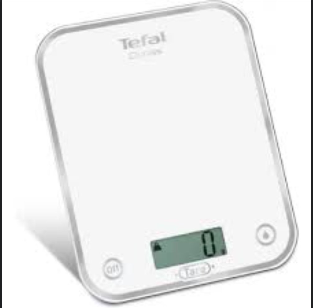 Balance de Cuisine Electronique de Precision TEFAL – BC5000V1 Optiss 5kg/1g Fonction Tare Conversion Liquide Ecran LCD Blanc Avec la balance de cuisine en verre Optiss, toutes vos recettes seront un succès