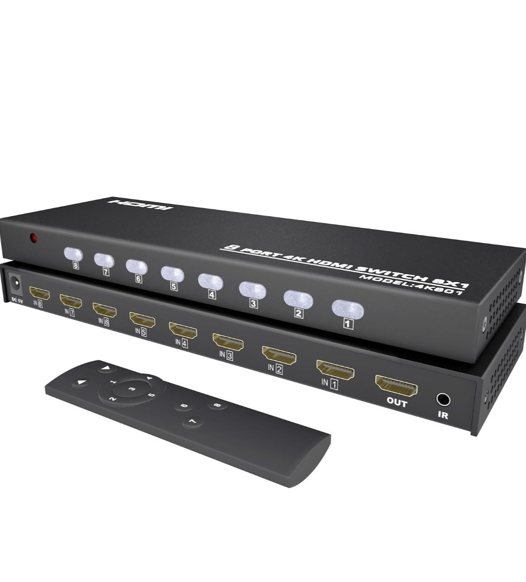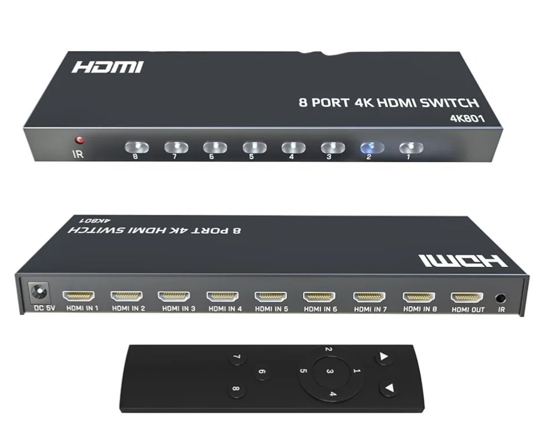 commutateur HDMI (HD Switch) 8×1 4Kx2K, un appareil qui vous permet de connecter jusqu’à huit sources HDMI (telles que des consoles de jeux, des lecteurs Blu-ray ou des ordinateurs) à un seul écran, téléviseur ou projecteur.