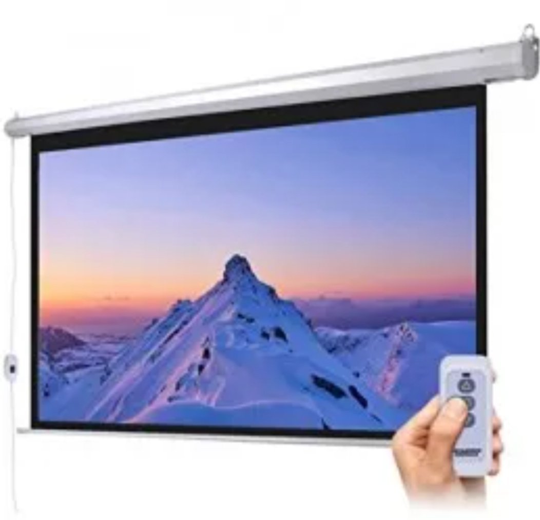 écran de projection motorisé, fréquemment utilisé pour le home cinéma ou les présentations professionnelles, qui s’actionne à l’aide d’une télécommande. Ce type d’écran offre une surface lisse et uniforme pour une qualité d’image optimale.