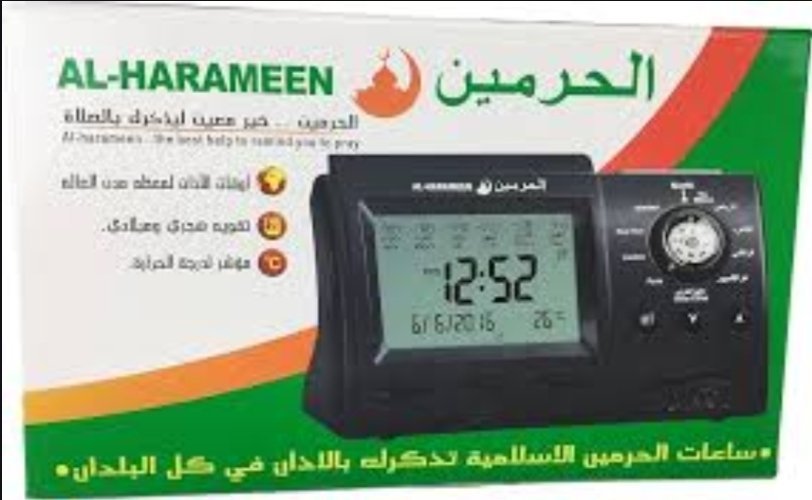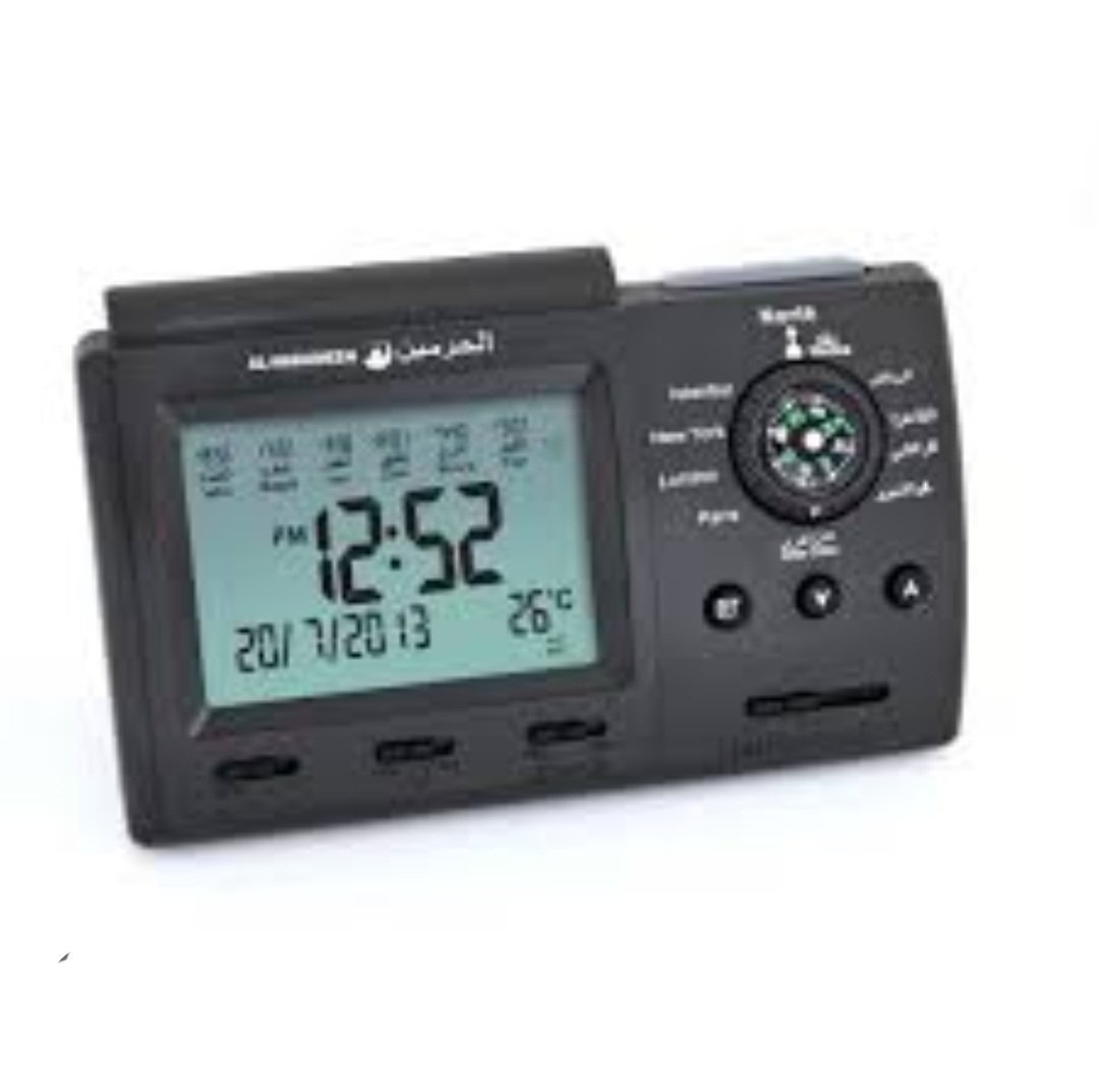 horloge numérique Azan Al-Harameen, conçue pour afficher les heures de prière musulmanes dans le monde entier.
