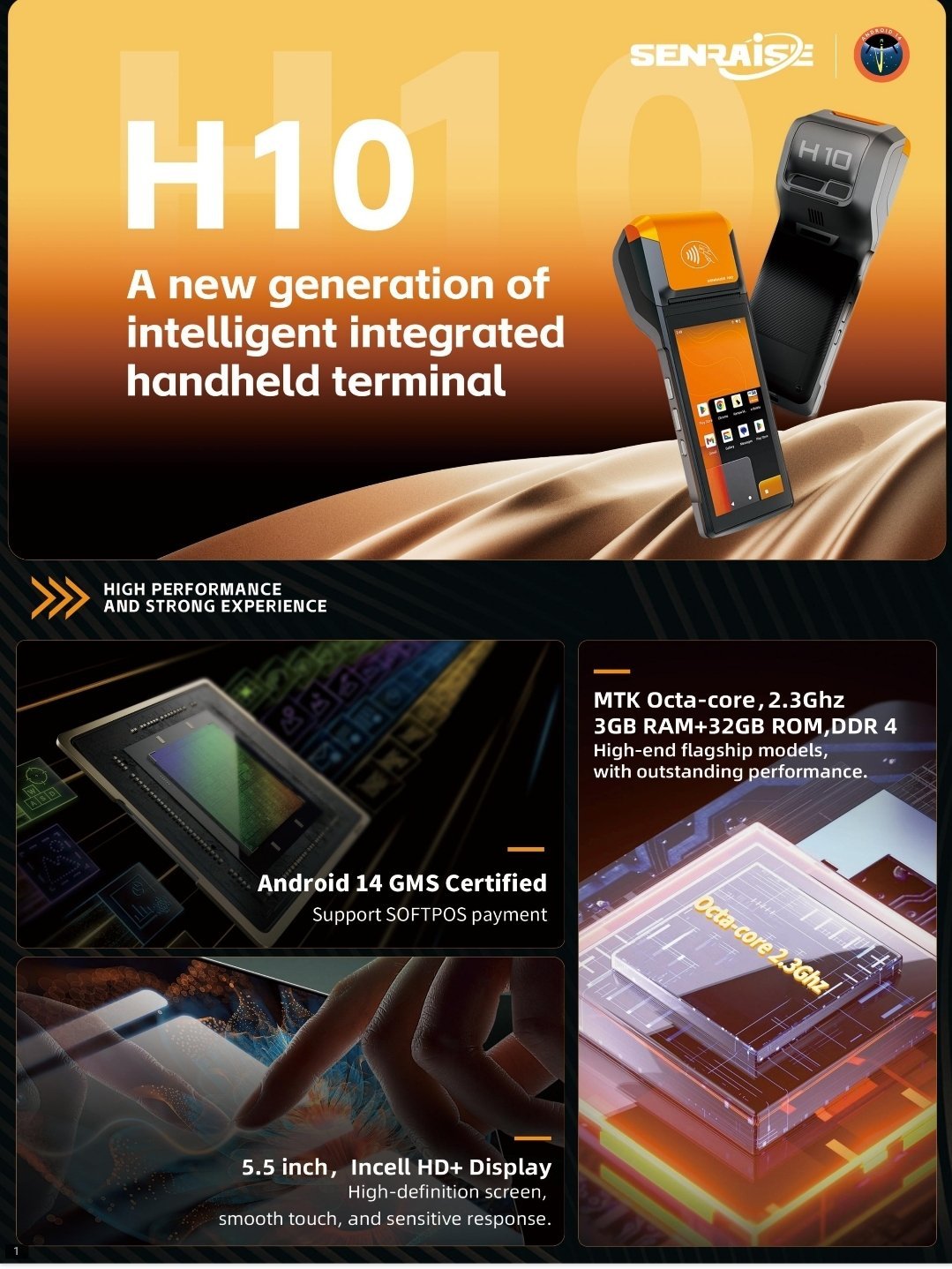 Le Senraise H10 est un terminal de poche intelligent de point de vente (POS) conçu pour les entreprises, fonctionnant sous le système d’exploitation Android 14 et doté d’un ensemble de spécifications puissantes.