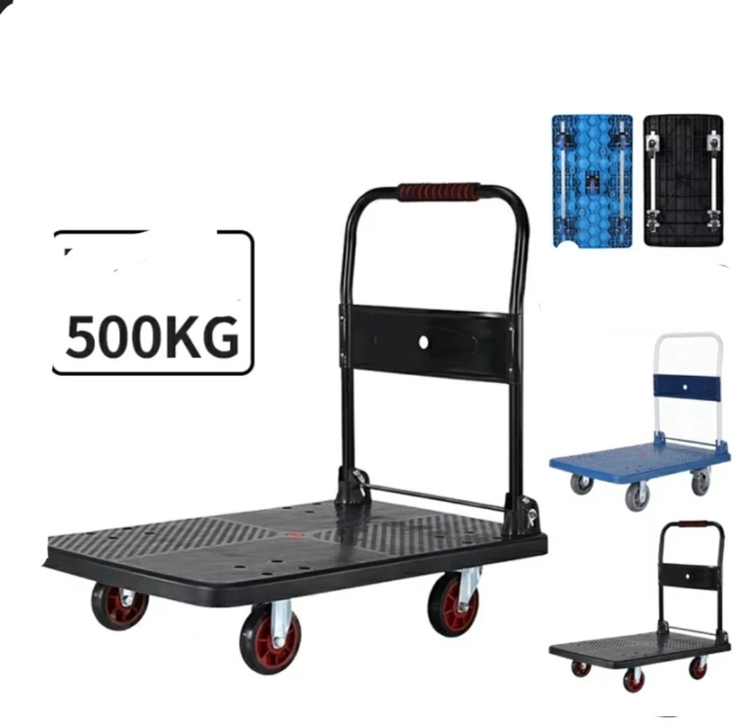 chariot 500 Kg de manutention pliant, un outil conçu pour le transport de charges lourdes sur des surfaces planes.