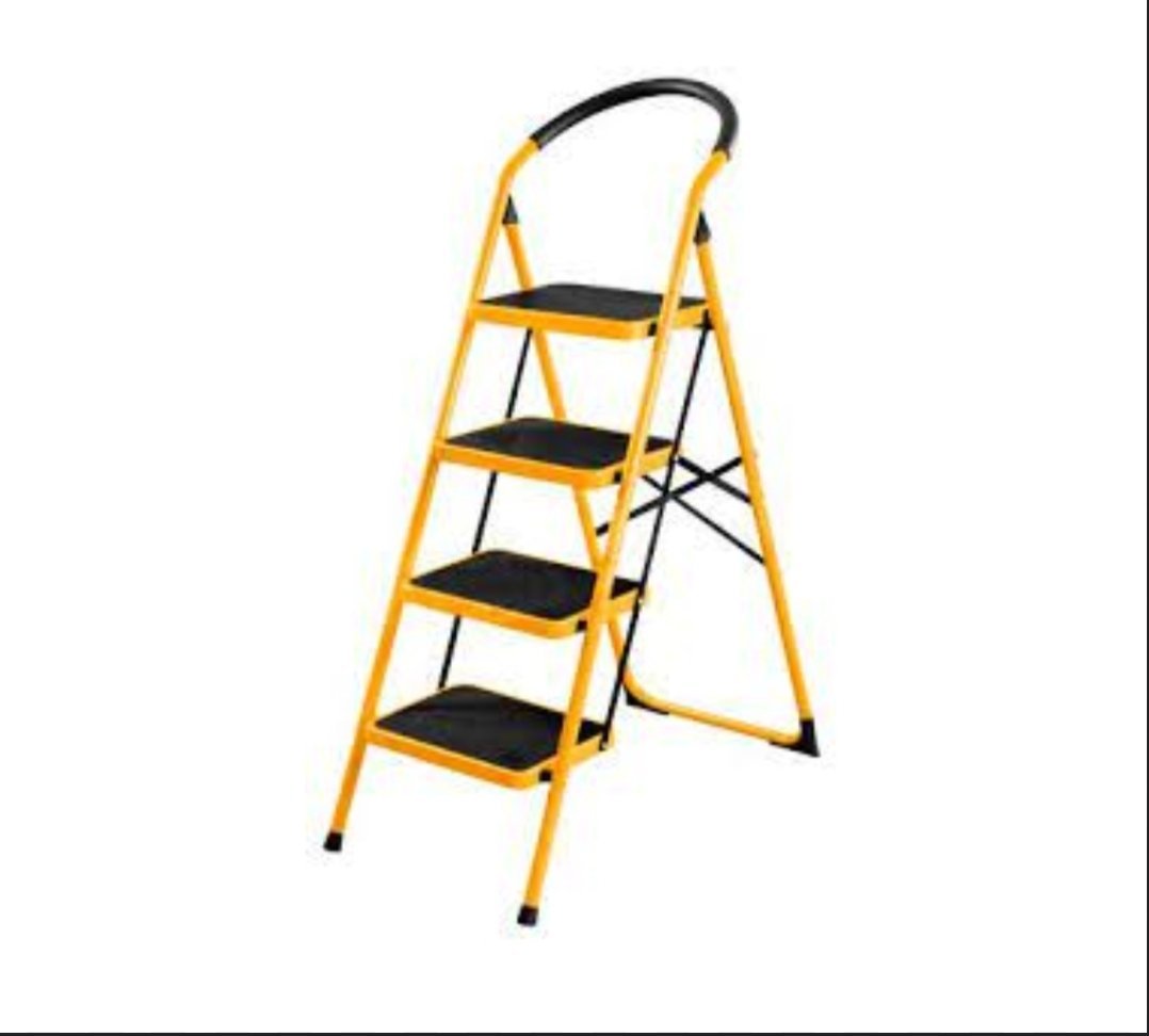 escabeau pliant à 4 marches, couramment utilisé pour les travaux domestiques ou professionnels en hauteur.