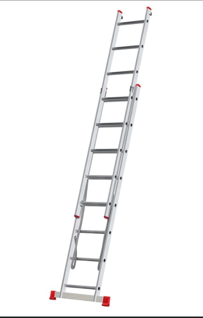 Matériau : Fabriquée en aluminium, ce qui la rend légère et facile à manipuler.Conception : Composée de deux sections (plans) qui peuvent coulisser l’une sur l’autre, permettant d’ajuster la hauteur.Polyvalence : Peut être utilisée comme échelle simple droite ou comme échelle double autoportante.Sécurité : Les barreaux sont rainurés et antidérapants pour une meilleure sécurité, et la construction est généralement conforme aux normes de sécurité EN-131.Utilisation : Idéale pour les travaux de peinture, de nettoyage de gouttières, ou d’autres tâches en hauteur qui nécessitent une stabilité et une portée accrues.