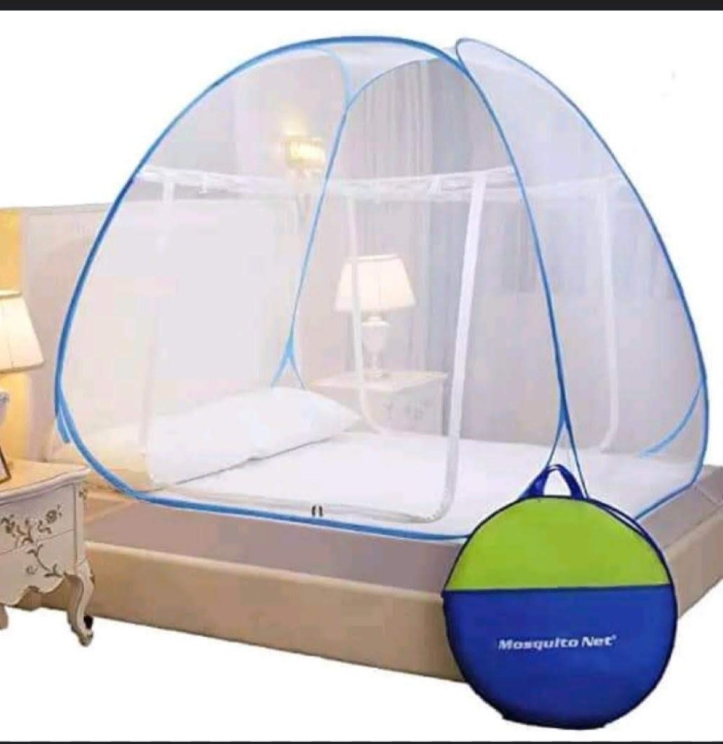 Elle est dotée d’une armature pliable qui lui permet de se déplier automatiquement.Elle protège des moustiques et d’autres insectes pendant le sommeil.Le sac de transport visible sur l’image indique qu’elle est portable et facile à ranger.Elle est souvent utilisée dans les zones où les moustiques sont courants