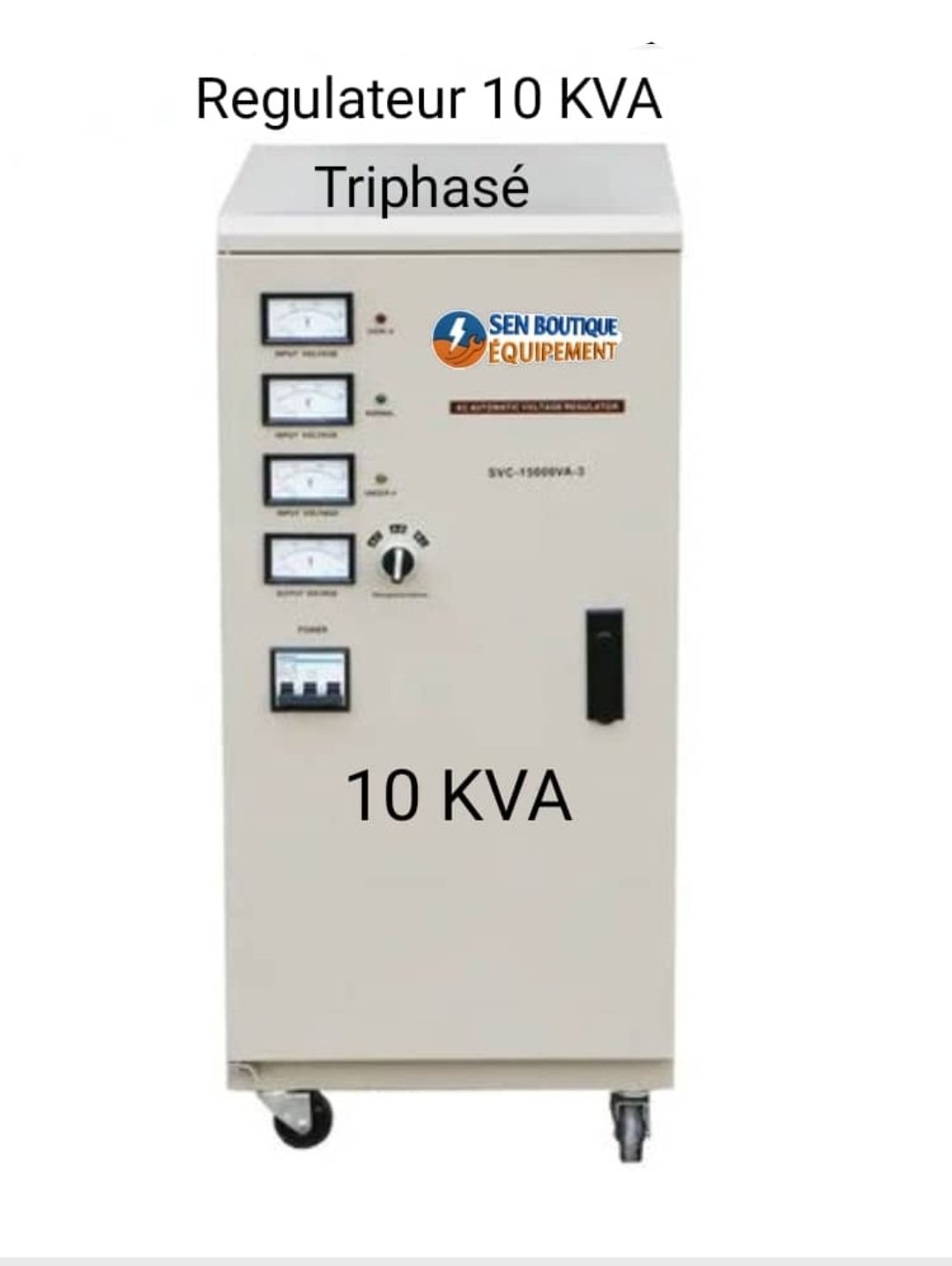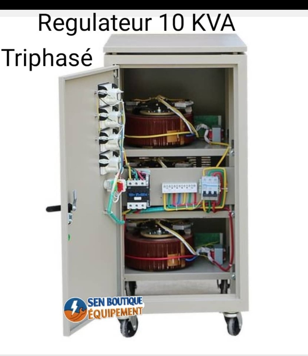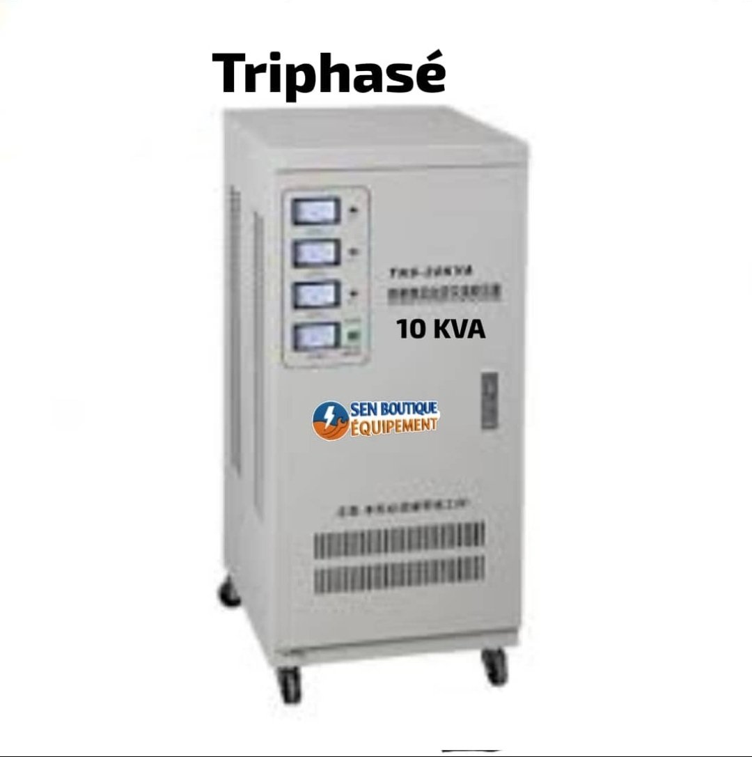 stabilisateur de tension triphasé de 10 kVA, un appareil utilisé pour protéger les équipements électriques contre les fluctuations de tension.