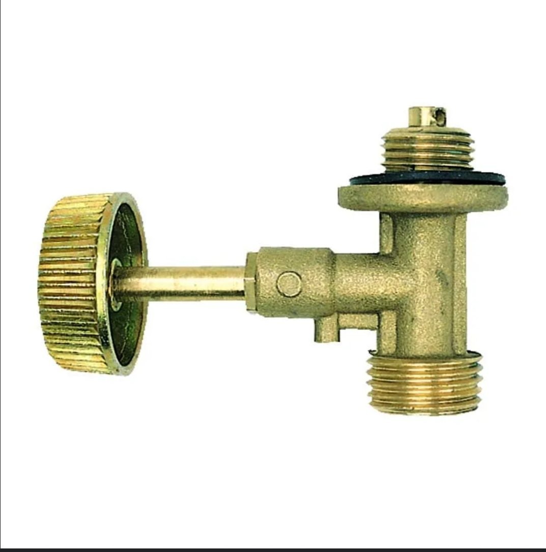 robinet de commande en laiton pour appareil à gaz, comme une cuisinière, un réchaud ou une bouteille de camping-gaz. L’inscription,